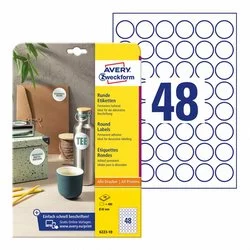 Etykiety Samop. Avery Okrągłe śr. 30mm 48/A4 Usuwalne Białe No.6223REV-10