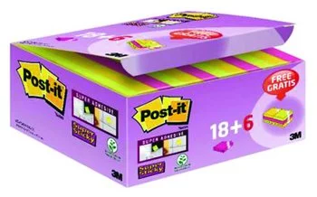 Karteczki Samoprzylepne Post-It Super Sticky (622-P24Sscol) 476X476Mm 18+6X90 Kart. Mix Kolorów Gratis
