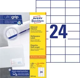Etykiety Samoprzylepne Avery 70x37 24/A4 A'200 Białe No.3474-200