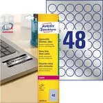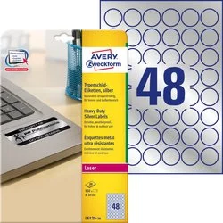 Etykiety Znamionowe Okrągłe Avery śr. 40mm 48/A4 A'20 Srebrne No.L6129-20