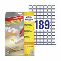 Etykiety Samop. Avery 25,4x10 189/A4 A'25 Usuwalne Białe No.L4731REV-25