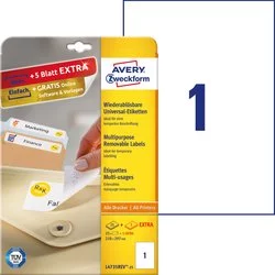 Etykiety Samop. Avery 210x297 1/A4 A'25 Usuwalne Białe No.L4735REV-25