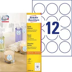 Etykiety Samorzylepne Avery Okrągłe śr. 60mm 12/A4 A'100 Białe No.L3416-100