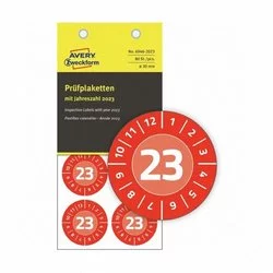 Etykiety Inspekcyjne Vinylowe 20XX Rok do Uzupełnienia Avery śr.30 A'80 Czerwone No.7901