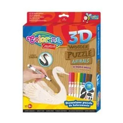 Puzzle Drewniane 3D Do Malowania Łabędź + Akcesoria /Colorino