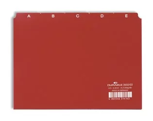 Przekładki do Kartotek A-Z 5/5 PCW 0,3mm Indeksy 40mm Poziome A5 25cz. Czerwone /Durable 365003