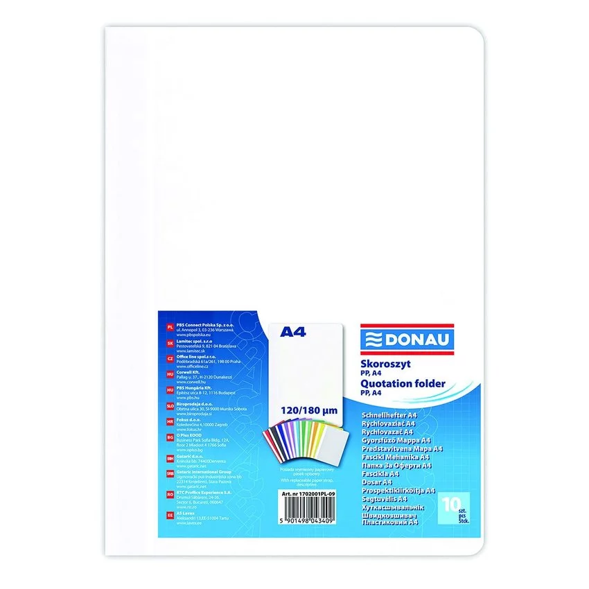 Skoroszyt Donau PP A4 Standard 120/180 mikr. Biały