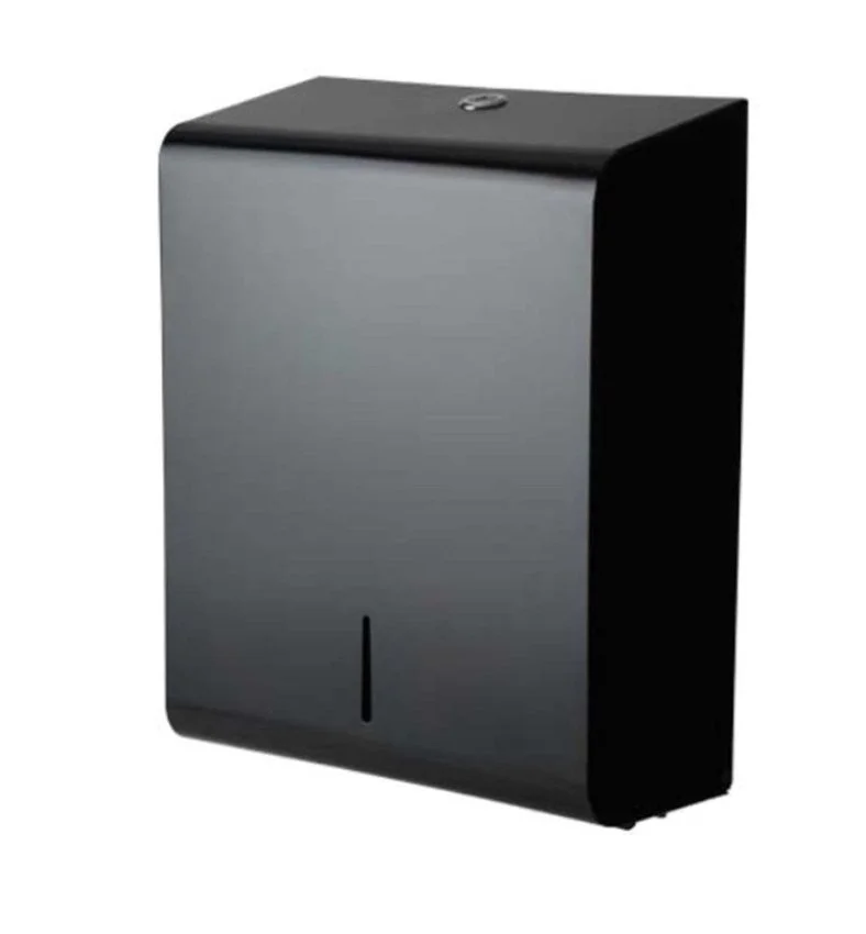 Podajnik ręczników papierowych BLACK MSB93A to trwały i elegancki dozownik do ręczników papierowych składanych w C lub Z, przeznaczony do montażu na ścianie. Wykonany z wysokiej jakości stali nierdzewnej malowanej proszkowo na kolor czarny, doskonale sprawdzi się w nowoczesnych łazienkach publicznych.