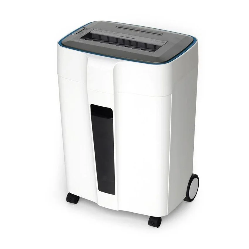 Niszczarka wyposażona jest w automatyczny start/stop z funkcją autoreversu, co ułatwia obsługę i minimalizuje ryzyko zacięć papieru. Zabezpieczenie silnika przed przegrzaniem oraz cichy silnik (60 dB) gwarantują bezpieczne i komfortowe użytkowanie. Mobilna obudowa na kółkach i pojemny kosz o pojemności 30 l sprawiają, że urządzenie jest wygodne w codziennej pracy.