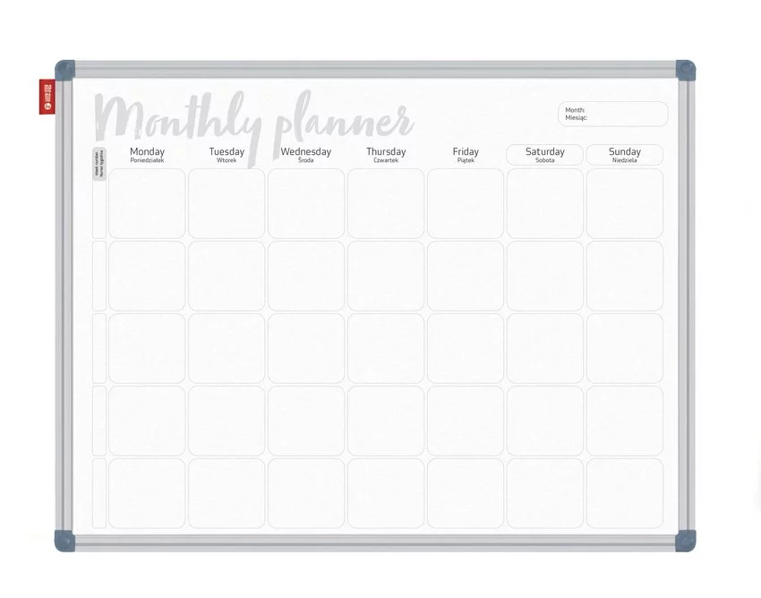 Tablica Planer Memobe, Miesięczny, Nadruk W Kolorze Czarnym, Rama Aluminiowa Classic, Model 6, 120X90 Cm