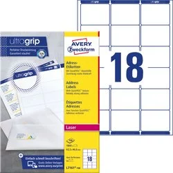 Samoprzylepne etykiety adresowe Avery 63.5x46.6 18/A4 A'100 białe No.L7161-100