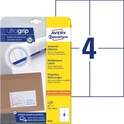 Etykiety Samop. Avery 105x148 4/A4 A'10 Białe No.6124
