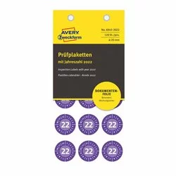Etykiety Inspekcyjne Vinylowe do Opisu Ręcznego 2022 Avery śr.30 A'80 Fioletowe No.6944-2022