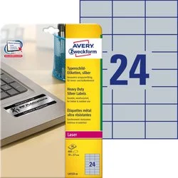 Etykiety Znamionowe Avery 70x37mm 24/A4 A'20 Srebrny No.L6133-20