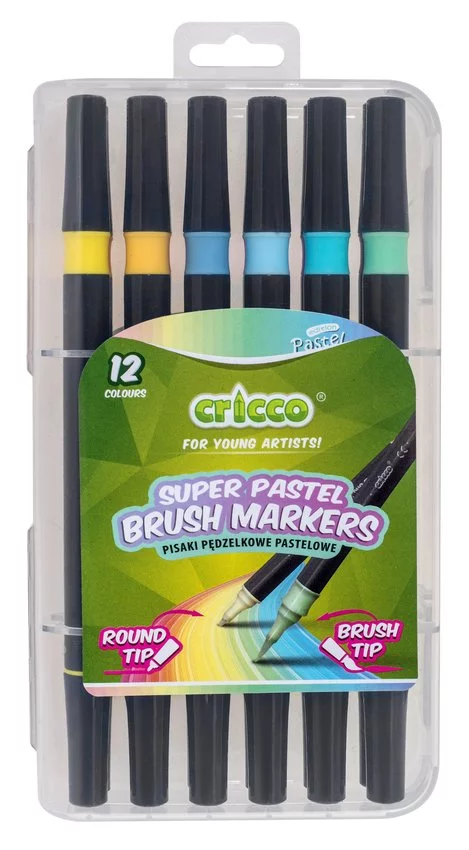 Pisaki Pastelowe Pędzelkowe Dwustronne Cricco 12-Kol. Kaseta