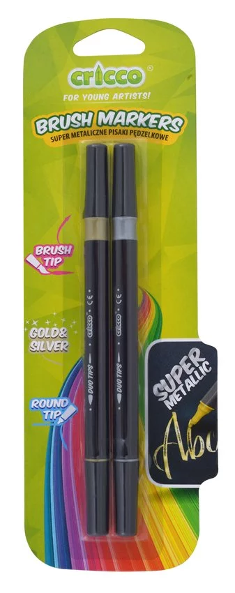 Pisaki Metaliczne Pędzelkowe Dwustronne Cricco Złoty + Srebrny Blister