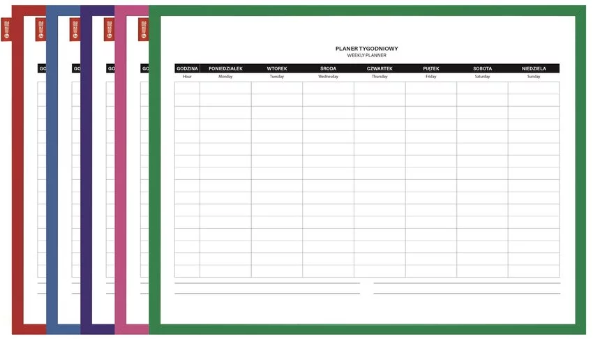 Tablica Planer Memobe, Tygodniowy, Nadruk W Kolorze Czarnym, Rama Drewniana Lakierowana Mix Kolorów, 60X40 Cm