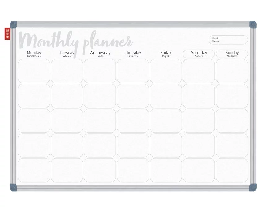 Tablica Planer Memobe, Miesięczny, Nadruk W Kolorze Czarnym, Rama Aluminiowa Classic, Model 5, 90X60 Cm