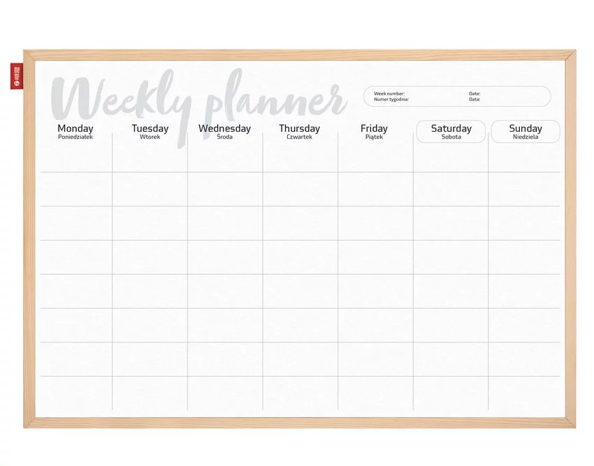 Tablica Planer Memobe, Tygodniowy, Nadruk W Kolorze Czarnym, Pl/En, Model 9, Rama Drewniana, 60X40 Cm