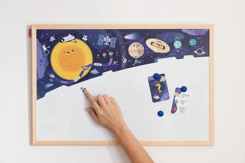 Tablica Edukacyjna Memobe, Whiteboardgame: Space Adventure!, Nadruk Kosmosu, Zestaw Do Gry, Wersja En, Rama Drewniana, 150X100 Cm