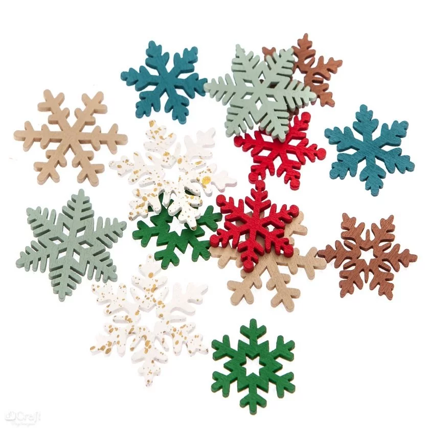 Drewniane śnieżynki, 14 szt., multikolor, złocone /DpCraft