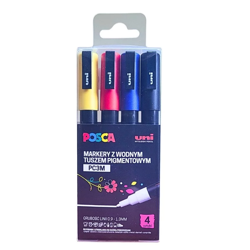 Zestaw Markerów z Farbą Plakatową Uni PC-3M Posca 4szt.