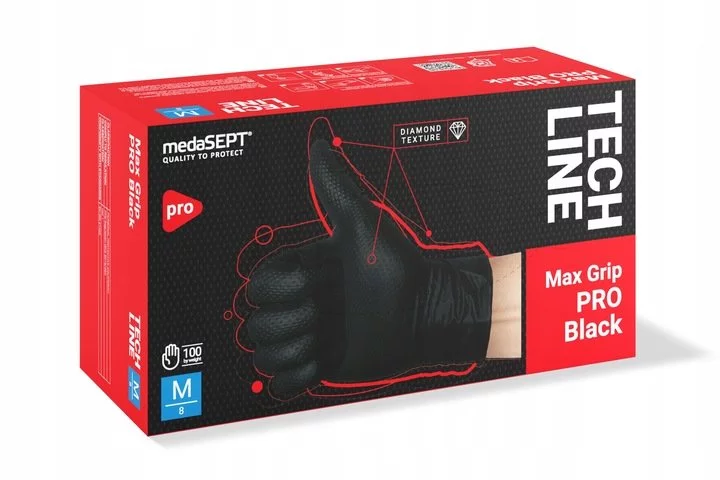 Rękawice Nitrylowe Bezpudrowe Czarne Max Grip PRO M 100szt. /Medasept