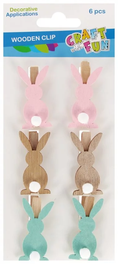 Drewniane Spinacze 6szt. Króliki z Pomponem /Craft With Fun