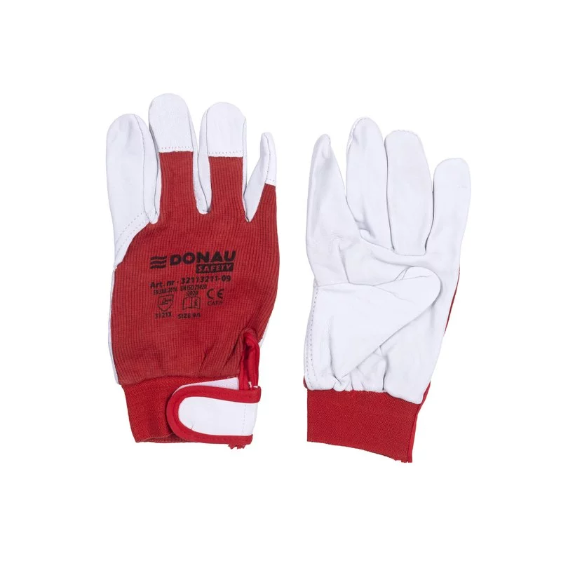 Rękawice Robocze Donau Safety Skóra Kozia Po Stronie Dłoni Rzep Rozm. 9/L Biało-Czerwone /DONAU SAFETY