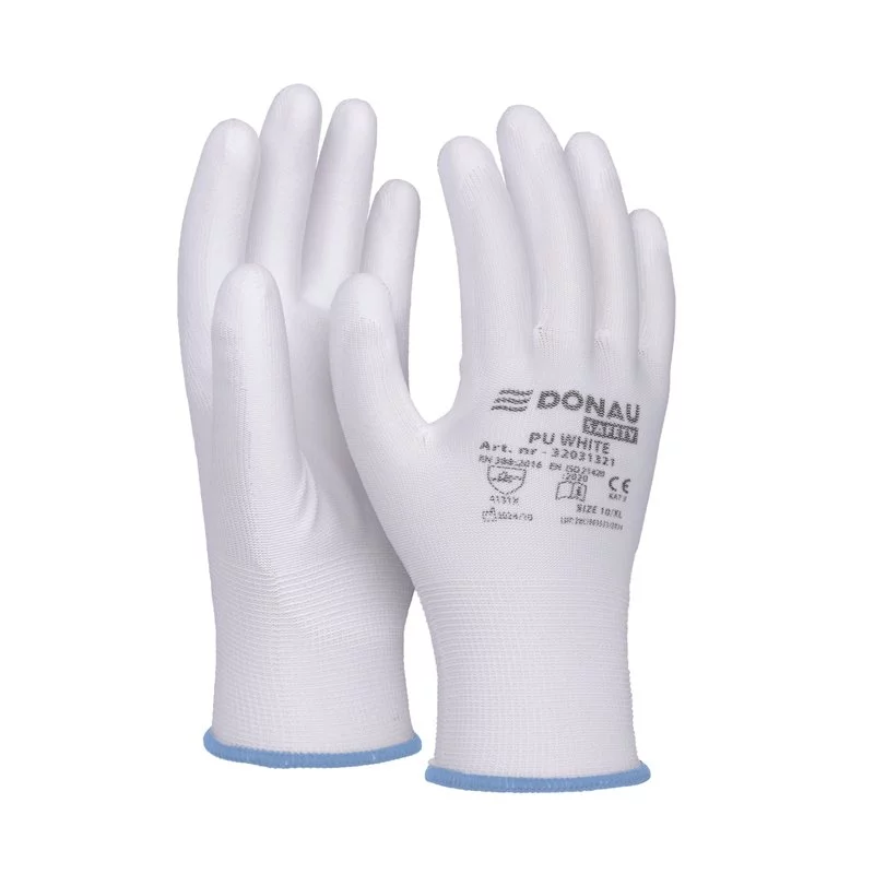 Rękawice Ochronne Donau Safety PU White Kat. II, Rozmiar 9 – Profesjonalna Ochrona i Precyzja w Białym Wydaniu