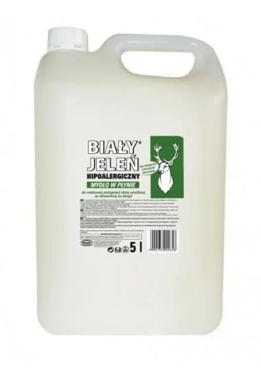 Hipoalergiczne mydło naturalne w płynie Biały Jeleń do codziennej pielęgnacji skóry wrażliwej ze skłonnością do alergii. Zawiera naturalne składniki, nie podrażnia skóry oraz skutecznie usuwa zabrudzenia. Przyjazne dla środowiska.