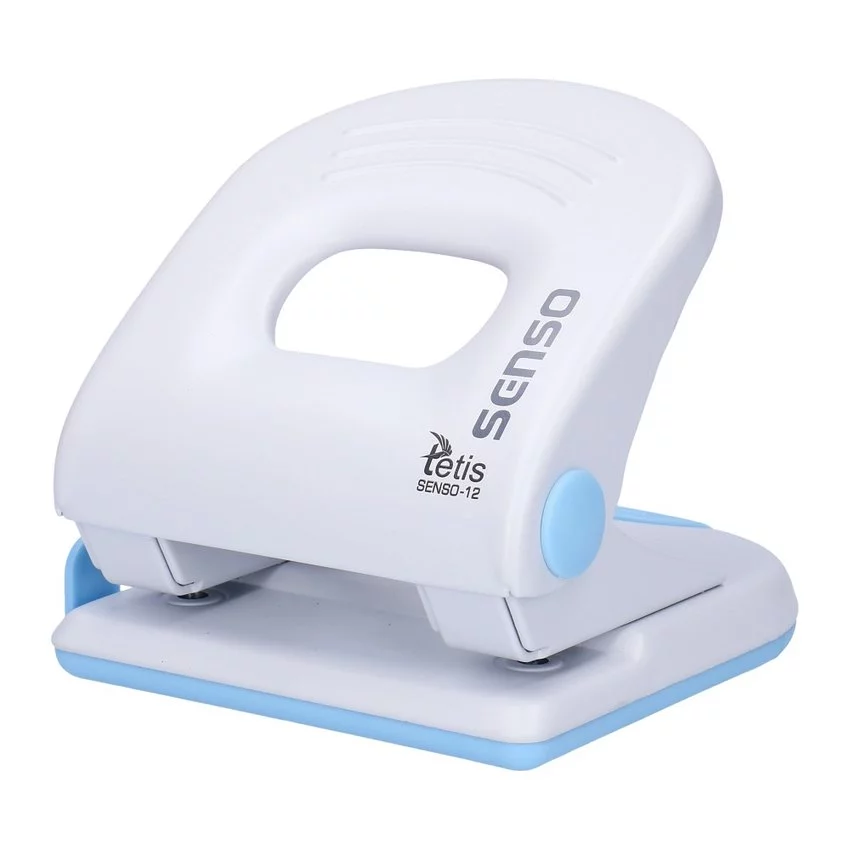 TETIS Senso 12 to mały dziurkacz dający duże możliwości. Całość wykonana jest z metalu a jego wykończenie z tworzywa sztucznego. Jednorazowo jest on w stanie przedziurkować do 40 kartek papieru o grubości 80 g/m2. Specjalny uchylany pojemnik na ścinki pozwala je usunąć bez konieczności zdejmowania całego spodu. Dodatkowo dziurkacz posiada wskaźnik środka strony oraz ogranicznik formatu dla jeszcze bardziej precyzyjnego rozmieszczenia dziurek. Producent daje na dziurkacz 5 lat gwarancji.