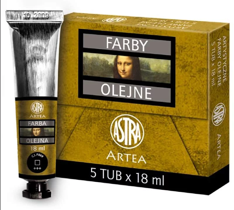 - głównymi składnikami farb olejnych artystycznych są wysokiej jakości pigmenty oraz olej schnący (olej lniany o odpowiedniej jakości)