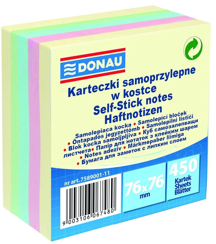 Bloczek Samoprzylepny 76x76 450k 4kol. Pastelowy /Donau