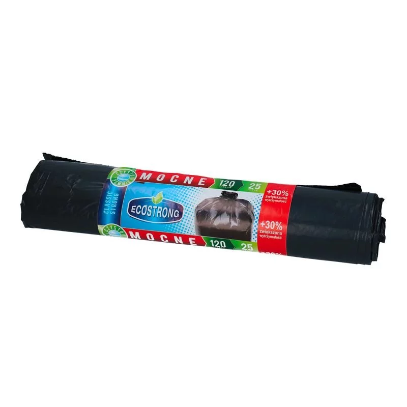 Worki Na Śmieci LDPE 120L A'10 Czarne z Taśmą Ecostrong /Sipeko