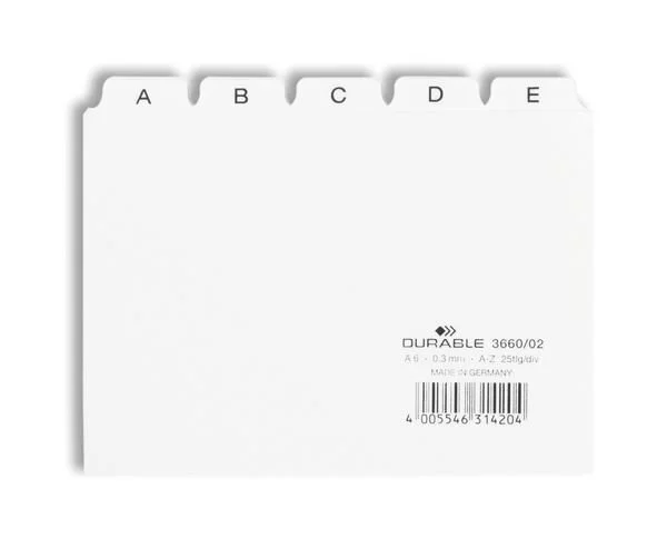 Przekładki do Kartotek A-Z 5/5 PCW 0,3mm Indeksy 25mm Poziome A6 25szt. Białe /Durable 366002