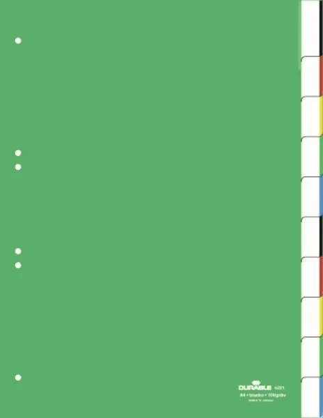 Przekładki A4 PP 1-10 Zgrzane Wymienne Indeksy Zielone /Durable 622105