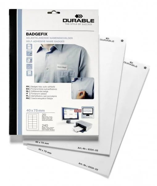 Identyfikator Samoprzylepny z Materiału BadgeFix 40x75mm 20szt. Biały /Durable 833402