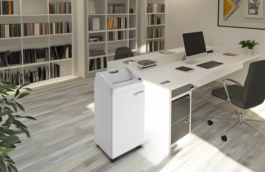 - Rodzaj cięcia: paski o szerokości 1,9 mm, poziom bezpieczeństwa P-3 zgodnie z normą DIN 66399, co gwarantuje podstawową ochronę danych.