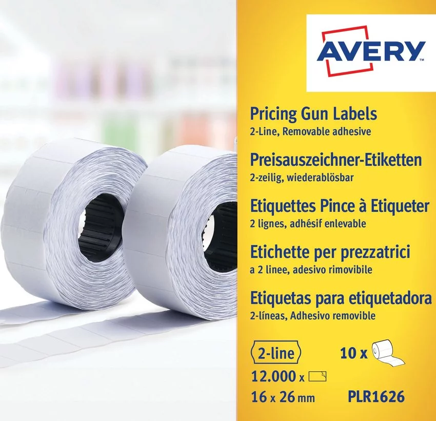 - Etykiety cenowe do metkownicy jednorzędowej Avery Zweckform PLR1626, kolor biały. Papierowe, Usuwalne dzięki czemu łatwo odkleisz je z produktu. 10 rolek w opakowaniu.