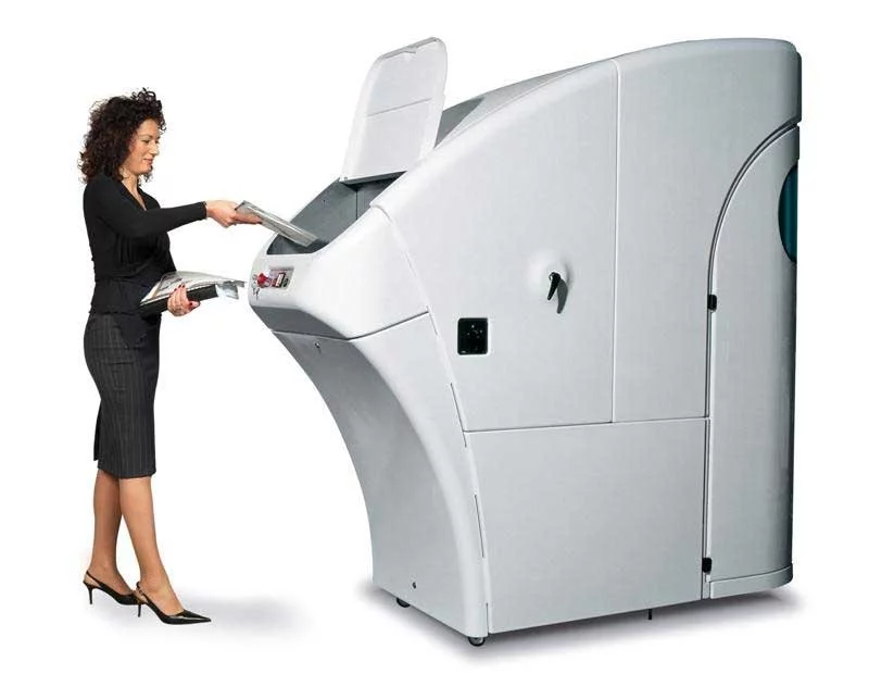 - Opcjonalny Compactor C-500 – Dzięki dodatkowi Compactor C-500 można pięciokrotnie zmniejszyć objętość ścinek papieru, co obniża koszty zarządzania odpadami i minimalizuje potrzebę częstego opróżniania kosza.