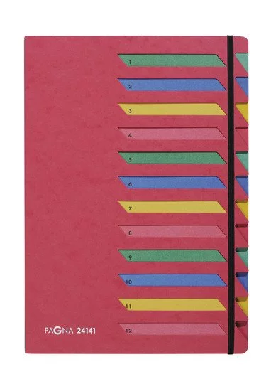 Teczka-Skorowidz z Preszpanu Kolorowe Przekładki Indeksy 1-12 Czerwona /Pagna 2414101