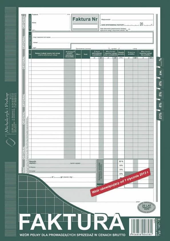 Faktura Brutto A4 Oryg.+1k Pion 141-1E /MiP