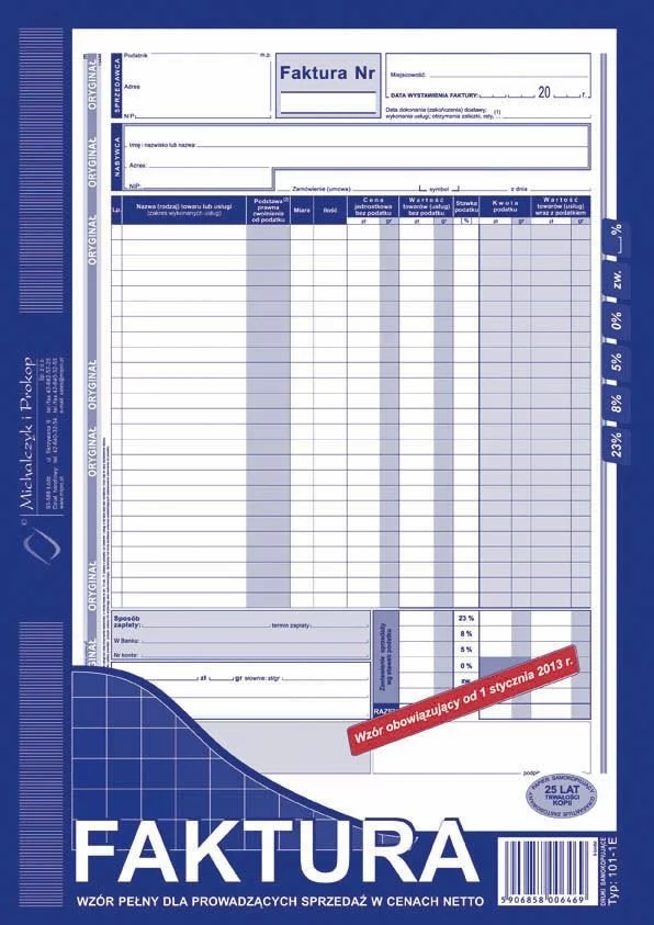 Faktura wzór pełny dla prowadzących sprzedaż w cenach nettomarki MiP