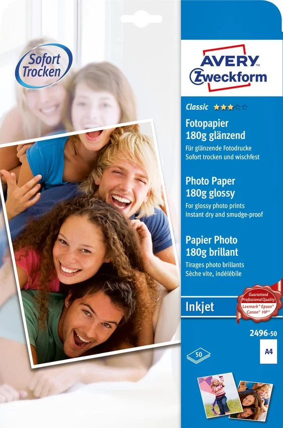 Papier Fotograficzny Classic 180g 50szt. Avery 210x297 Biały Błyszczący No.2496-50