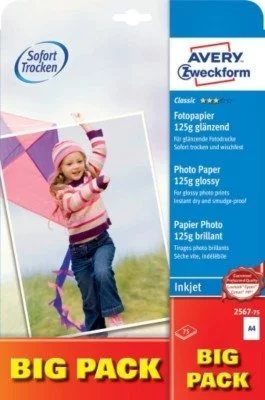 Papier Fotograficzny Powlekany 125g 75szt. Avery 210x297 Biały Wysokobłyszczący No.2567-75