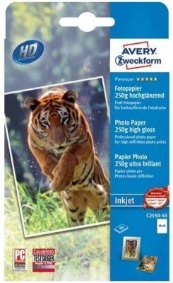 Papier Fotograficzny Premium 250g 40szt. Avery 100x150 Biały Wysokobłyszczący No.C2550-40P