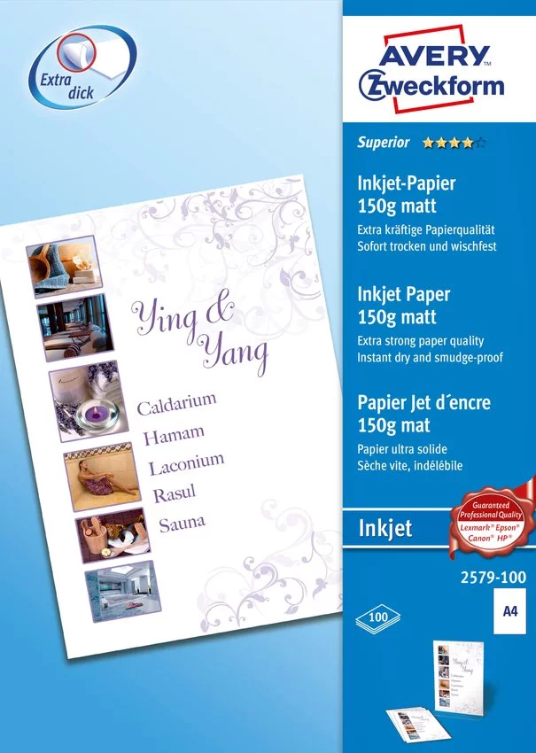 Papier Fotograficzny Superior 150g 100szt. Avery 210x297 Biały Matowy No.2579-100