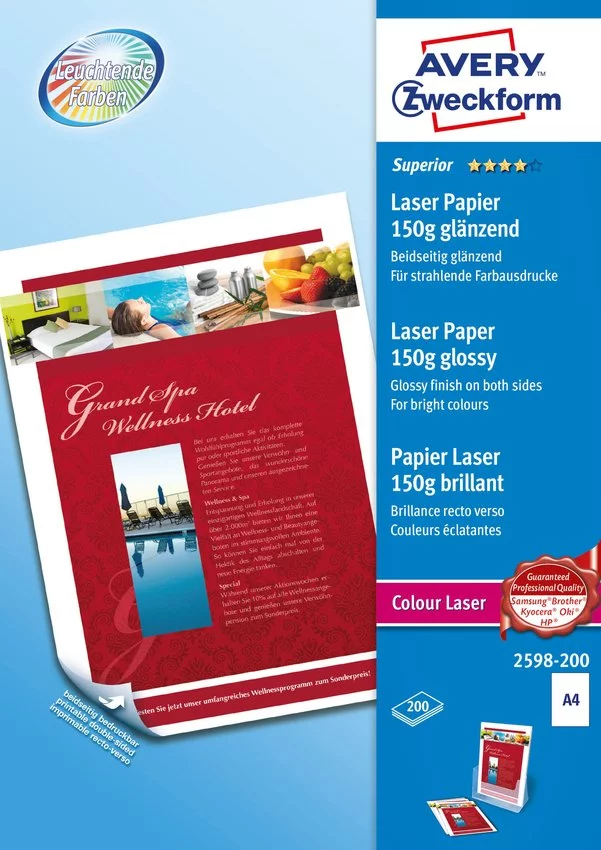 Papier Fotograficzny Obustronnie Powlekany Superior A4 150g 200szt. Avery 210x297 Biały Błyszczący No.2598-200
