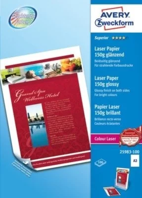 Papier Fotograficzny Obustronnie Powlekany Superior A3 150g 100szt. Avery 297x420 Biały Błyszczący No.25983-100